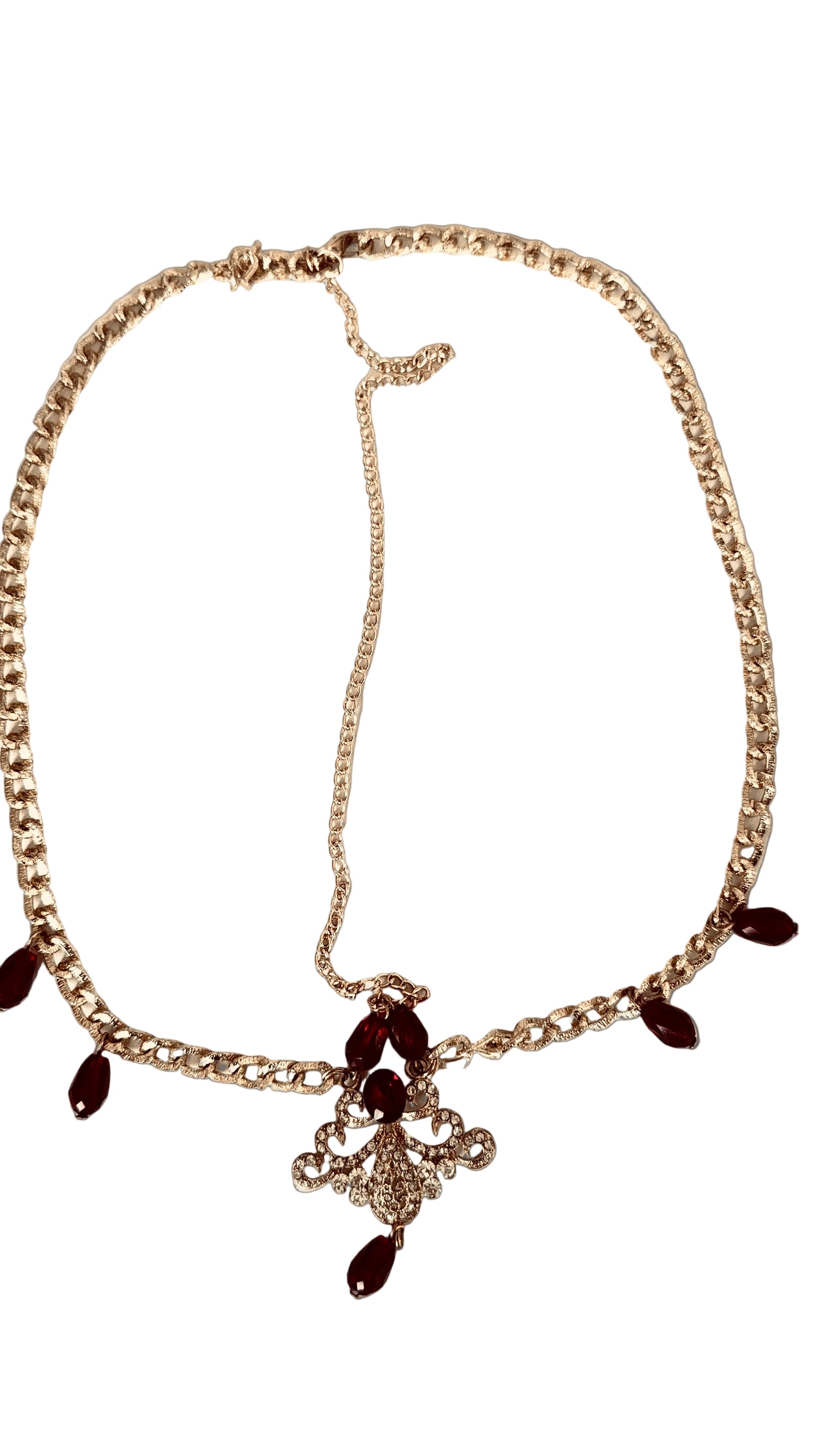 Color: Gold with deep red stones